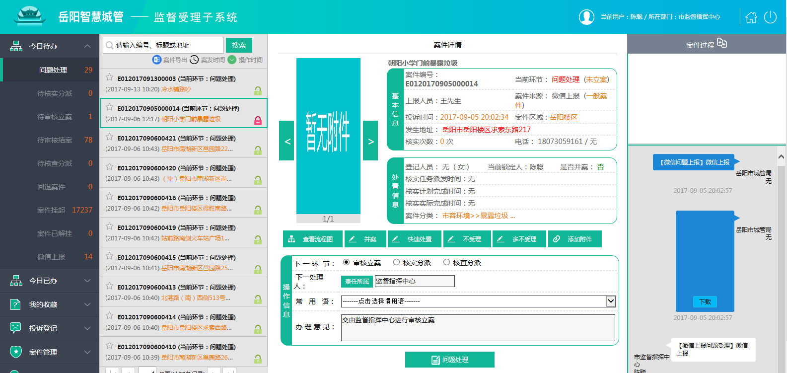 岳阳市数字城管系统项目分二期建设,以打造一个“开放互联标准化、信息获取自动化、监督管理精细化、服务手段多样化、业务职能协同化、辅助决策智能化”的入门级智慧城管平台为目标。主要工作包括五部分:一是通过推进体制机制建设,完善顶层设计、拓展覆盖范围和增强工作权威,实现城市管理高位监督、整体联动;二是通过推进二级平台建设,横向延伸覆盖到各区,纵向延伸至街道办事处及市城管局下属三级单位,实现数字城管系统全面覆盖、高效运行;三是通过基础硬件设备建设,为数字城管系统运行提供良好的基础硬件、容灾备份及测试等硬件支撑环境。四是通过推进系统模块建设,在完善系统升级优化和车载设备监控两个子系统,增加数据挖掘和预警等八个子系统,实现系统功能功能齐备、管理精准。并与市电子政务云平台完全融合互通,实现数据互联互通、资源共享;五是通过推进指挥中心大厅改造升级,完成监督、指挥和热线的功能分区、城市管理应急指挥调度,实现全方指挥、一体调度功能。